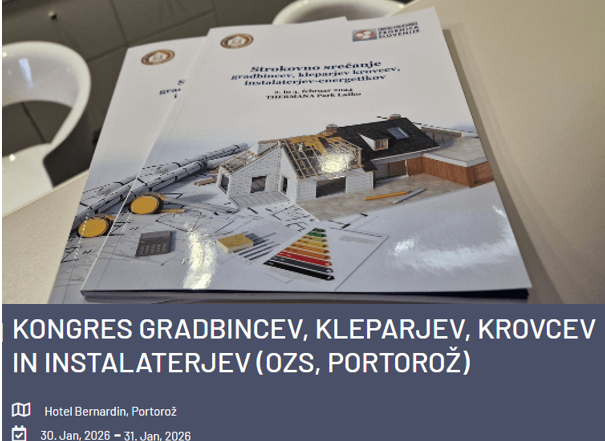 V petek, 30.01.2026 in soboto 31.01.2026, bo v Kongresnem centru GH Bernardin, Portorož strokovno srečanje gradbincev, kleparjev, krovcev, instalaterjev-energetikov. Tam bomo imeli tudi mi predavanje na temo: "PASTI SODOBNE GRADNJE" Prisrčno Vabljeni! [...]