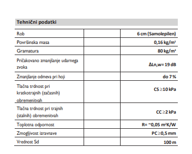 • Parna zapora: zaščita talne obloge pred dvigom preostale vlage iz estrihov